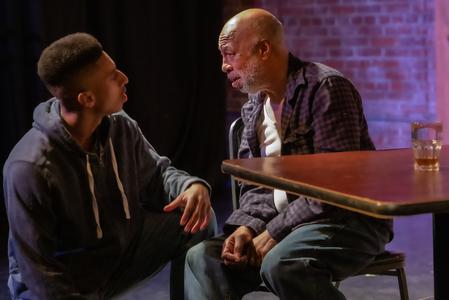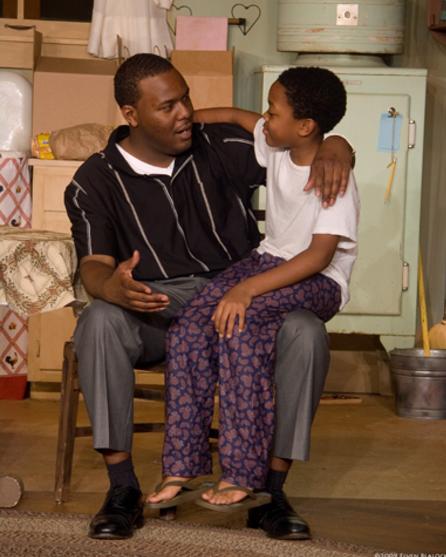 Jarron Robinson as Walter Lee Younger and Dorian Davis as Travis Younger